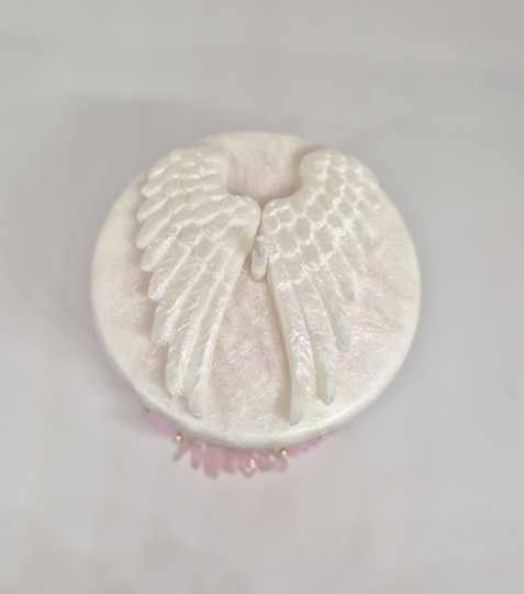 - Andělská křídla: Na vrchní straně svíčky, přímo u knotu, se vznášejí andělská křídla z vosku. Jsou připomínkou, že si zasloužíte ochranu a jemnost.