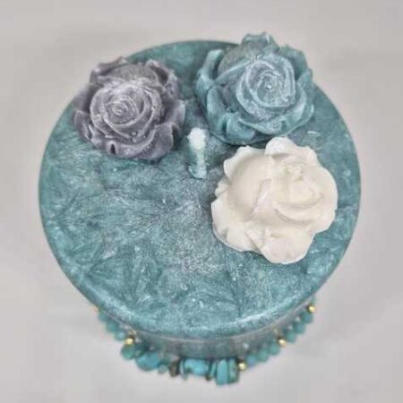 Velikost 12×7 cm, váha 400 g. Aromaterapeutická květinová vůně. Baleno v celofánu. Bavlněný knot. Palmový vosk.