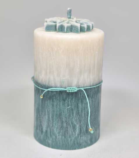 - Barevné tóny: Svíčka je v odstínech čisté bílé, která symbolizuje čistotu, a jasné tyrkysové, která evokuje klid oceánu, otevřenost a svobodu. Tato kombinace uklidňuje mysl a utišuje roztěkanou duši.